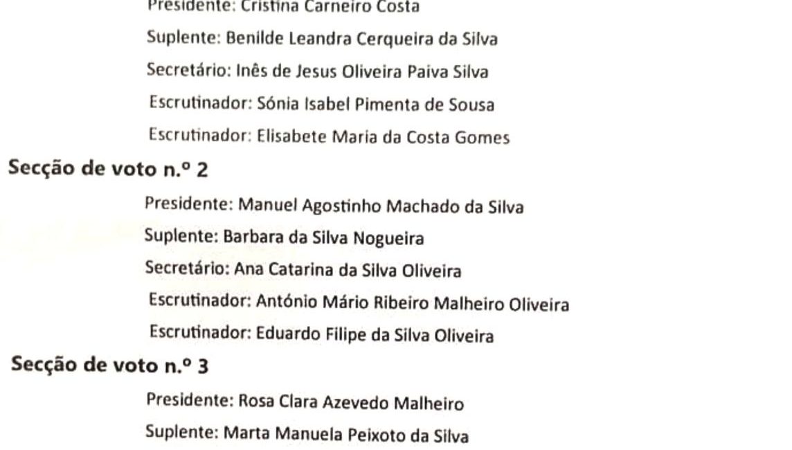 Membros da Mesa das Secções de Voto da União de Freguesias de Esqueiros, Nevogilde e Travassós 🇵🇹